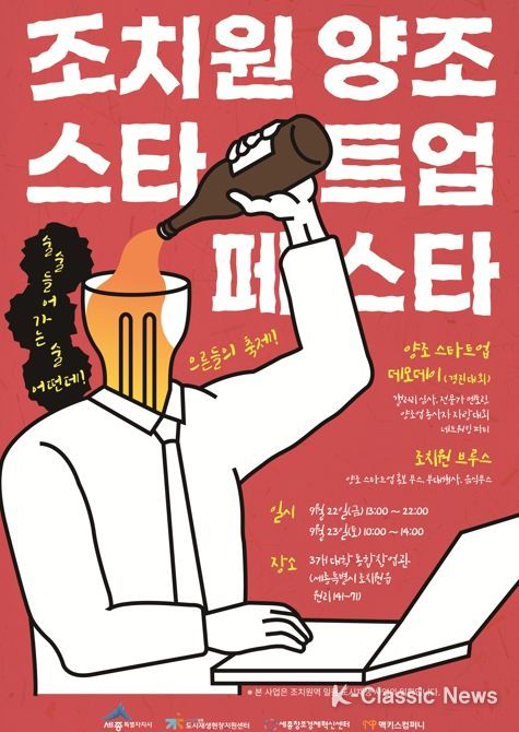 K-Classic News 기자 | 근 100년 역사의 조치원 양조 사업을 활용해 지역경제를 부흥하기 위한 ‘조치원 양조스타트업 페스타’가 오는 22일부터 23일까지 이틀간 조치원읍 3개대학 통합창업관에서 성대하게 열린다.