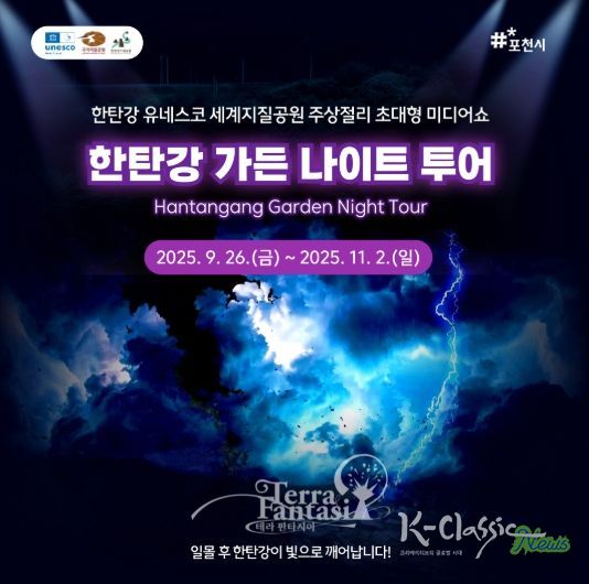 K-Classic News 기자 | 포천시는 ‘한탄강 미디어 아트 파크 조성 사업’ 1단계 구간에서 9월 26일부터 11월 2일까지 ‘한탄강 가든 나이트 투어’ 프로그램을 시범 운영한다.
