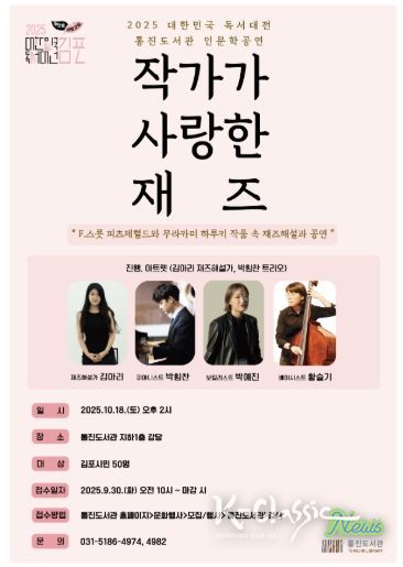 K-Classic News 기자 | 김포시 통진도서관은 ‘작가가 사랑한 재즈’ 프로그램을 오는 10월 18일 오후 2시부터 통진도서관 지하 강당에서 운영한다.