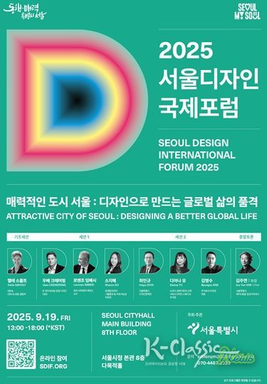 K-Classic News 기자 | ‘2025 서울디자인국제포럼’이 19일 13시, 서울시청 8층 다목적홀에서 열린다. 올해 6회차를 맞은 이 포럼은 ‘디자인이 도시를 바꾼다’라는 기조 아래, 국내외 주요 연사들과 함께 디자인의 사회적 역할을 모색해 왔다.