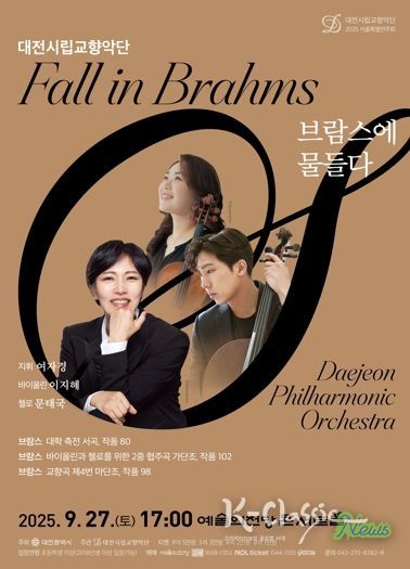 이번 공연은 예술감독 겸 상임지휘자 여자경의 지휘 아래, 바이올리니스트 이지혜와 첼리스트 문태국이 협연자로 무대에 오른다. 대전시향은 브람스의 대표 작품들을 연주하며 수도권 관객과 오랜만의 만남을 갖는다.