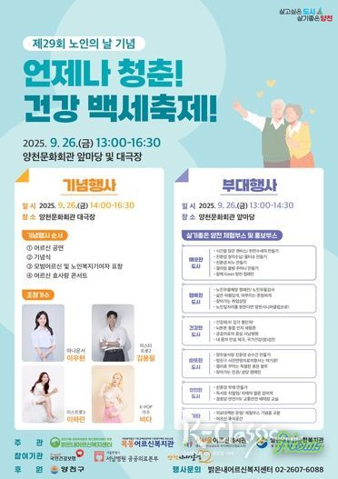 K-Classic News 기자 | 양천구는 제29회 노인의 날(10월 2일)을 앞두고 오는 25, 26일 양일간 지역 어르신들을 위한 대규모 화합의 장 ‘언제나 청춘! 건강 백세축제’를 개최한다고 21일 밝혔다.
