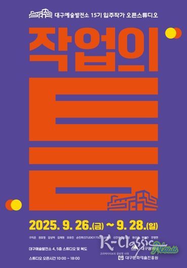 K-Classic News 기자 | 대구문화예술진흥원 문화예술본부는 오는 9월 26일부터 9월 28일까지 3일간 15기 입주작가 오픈스튜디오 ‘작업의 틈’을 대구예술발전소 4·5층 스튜디오 및 복도에서 개최한다.