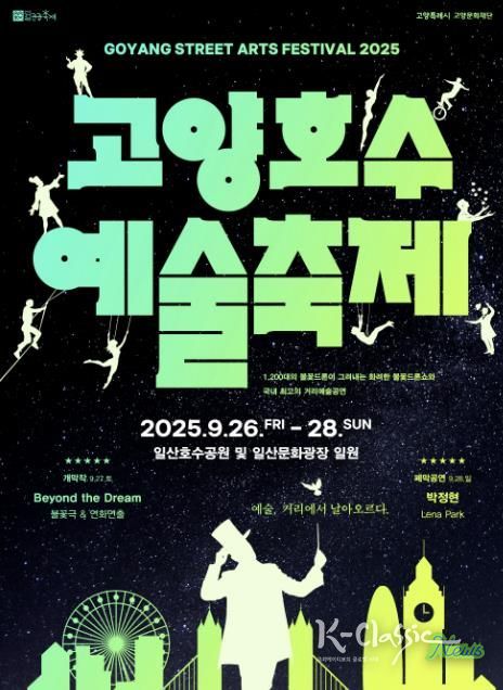 K-Classic News 기자 | 고양특례시를 대표하는 ‘2025 고양호수예술축제'가 오는 9월 26일부터 28일까지 3일간 일산호수공원과 일산문화광장에서 개최된다.