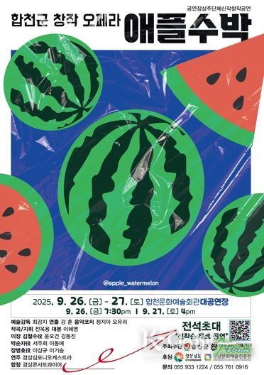K-Classic News 기자 | 합천군은 오는 9월 26일 저녁 7시 30분, 27일 오후 4시 양일간 합천문화예술회관에서 합천군 창작오페라 “애플수박”공연을 개최한다.