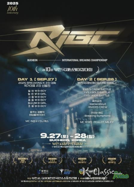 K-Classic News 기자 | 부천시는 9월 27일부터 28일까지 부천시청 잔디광장과 차 없는 거리에서 ‘제10회 부천국제브레이킹대회(BIBC, Bucheon International Breaking Championship)’를 개최한다.