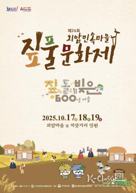 K-Classic News 기자 | ‘K-컬쳐’ 열풍이 전 세계를 휩쓸고 있는 가운데, 가장 ‘한국적인 마을’로 불리는 아산시 송악면 외암민속마을에서 특별한 가을 축제가 열린다. 오는 10월 17~19일 외암마을과 저잣거리 일원에서 펼쳐지는 ‘제24회 외암마을 짚풀문화제’가 그 무대다.