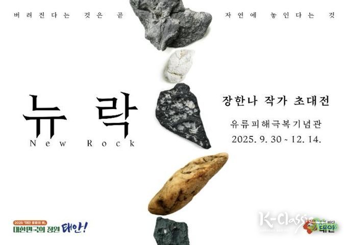 태안군은 9월 30일부터 12월 14일까지 만리포 해수욕장 인근에 위치한 유류피해극복기념관(소원면 천리포1길 120)에서 장한나 작가 초대전 ‘뉴락(New Rock)’을 개최한다고 밝히고 군민 및 관광객들의 많은 관심을 당부했다.