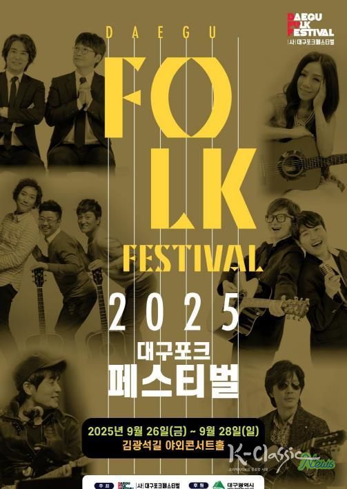 K-Classic News 기자 | 대구광역시와 (사)대구포크페스티벌은 오는 9월 26일부터 9월 28일까지 3일간, 김광석길 야외콘서트홀 일원에서 ‘2025 대구포크페스티벌’을 개최한다.