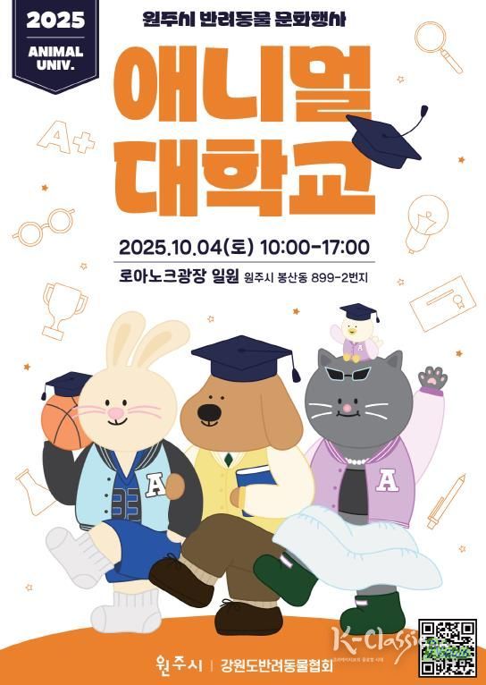 K-Classic News 기자 | 원주시농업기술센터는 10월 4일 오전 10시 원주천 로아노크광장에서 반려동물 문화행사 ‘애니멀 대학교’를 개최한다.