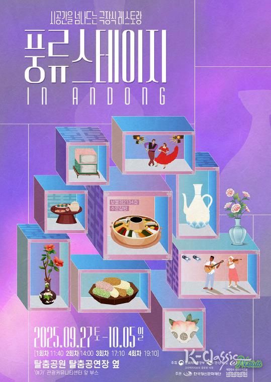 K-Classic News 기자 | 안동시와 한국정신문화재단은 대한민국 문화도시 조성사업의 일환으로 '풍류 스테이지 in Andong' 극장식 레스토랑을 오는 9월 27일부터 10월 5일까지 안동국제탈춤페스티벌 행사장에서 선보인다.
