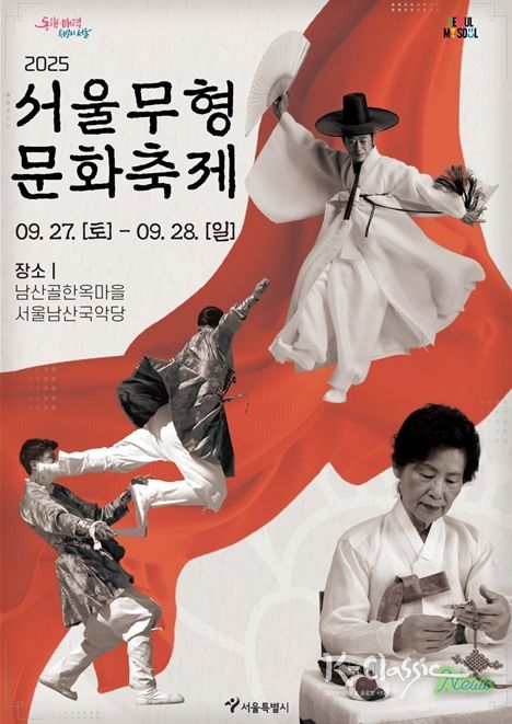 K-Classic News 기자 | 서울시는 9월 27일부터 28일까지 양일간 남산골한옥마을에서 '2025 서울무형문화축제'를 개최한다. 무형유산 보유자와 전승자, 시민이 함께하는 이번 축제에는 무형유산 24종목이 참여해 공연·시연·체험을 선보이며 남산골한옥마을을 ‘전통 문화의 장’으로 물들인다.
