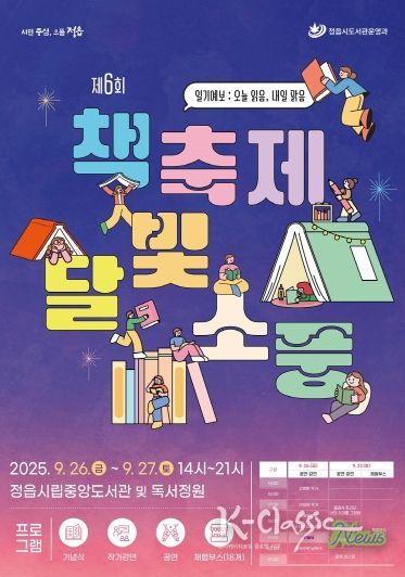 K-Classic News 기자 | 정읍시가 책과 문화가 어우러지는 시민 참여형 축제 ‘제6회 책축제 달빛소풍’을 오는 26일과 27일 정읍시립중앙도서관과 독서공원에서 개최한다.