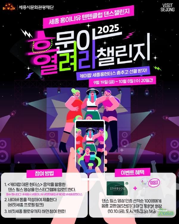 K-Classic News 기자 | 세종시문화관광재단은 전 세계적으로 인기를 얻고 있는 넷플릭스 애니메이션 ‘케이팝 데몬헌터스(케데헌)’의 요소를 접목해, 오는 10월 10일 열리는 '2025 세종 흥이나유 텐텐클럽' 사전 이벤트 ‘흥문(興門)아 열려라 챌린지(도전 잇기)’를 진행한다.