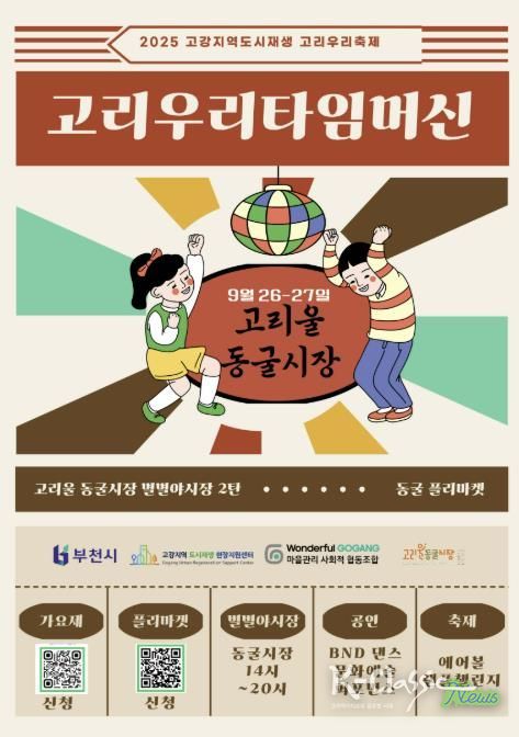 K-Classic News 기자 | 부천시는 9월 26일부터 27일까지 이틀간 오정구 고리울 동굴시장에서 ‘2025 고리우리축제’를 연다고 23일 밝혔다. 이번 행사는 부천시 원도심재생과가 주최하고 원더풀고강마을관리 사회적협동조합이 주관한다.