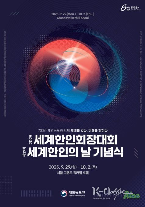 K-Classic News 기자 | 재외동포청이 주최하는 ‘2025 세계한인회장대회’가 9월 29일 서울 광진구에 있는 서울 그랜드 워커힐 호텔에서 막을 올린다.