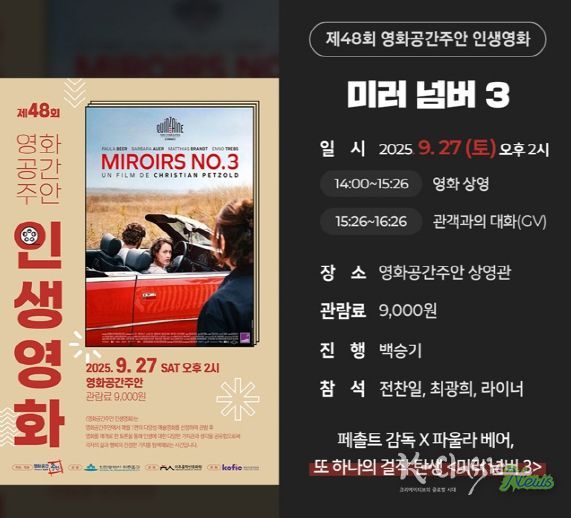 이번 상영작은 올해 칸국제영화제 감독 주간 초청작 ‘미러 넘버 3’로, 영화공간주안 4관에서 상영된다.