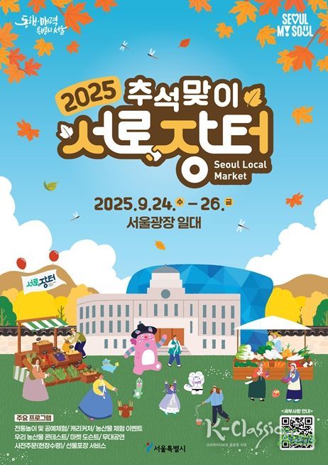 K-Classic News 기자 | 서울시는 한가위를 맞아 전국 최대 규모의 직거래장터인 '추석맞이 서로장터'를 오는 9월 24일부터 26일까지 3일간 서울광장에서 개최한다. 우수 농수특산물을 한자리에서 만날 수 있는 동시에 최대 30% 할인 판매하여 시민들의 추석 장바구니 부담을 덜고, 다양한 문화공연과 체험 및 경품 이벤트도 준비되어 있다.