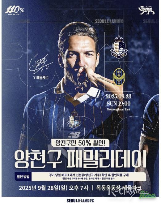 이날 인천유나이티드전은 양천구민에게 특별히 티켓 50% 할인 혜택이 제공되며, 현장 매표소에서 거주 확인 후 반값으로 즐길 수 있다.