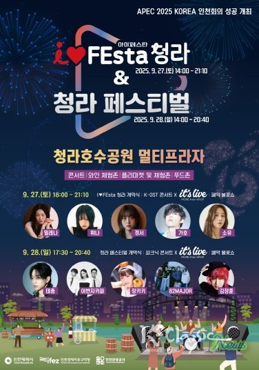 K-Classic News 기자 | 인천경제자유구역청이 주최하고 인천관광공사(사장 백현)가 주관하는‘2025 I♥FEsta 청라 & 청라 페스티벌’이 9월 27일과 27일 이틀간 청라 호수공원 멀티프라자에서 열린다.