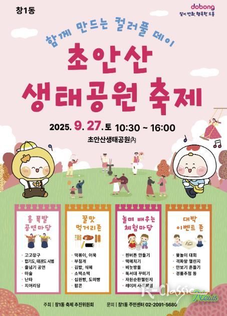 K-Classic News 기자 | 서울 도봉구 창1동이 9월 27일 초안산 생태공원에서 '함께 만드는 컬러풀 데이 초안산 생태공원 축제'를 개최한다.
