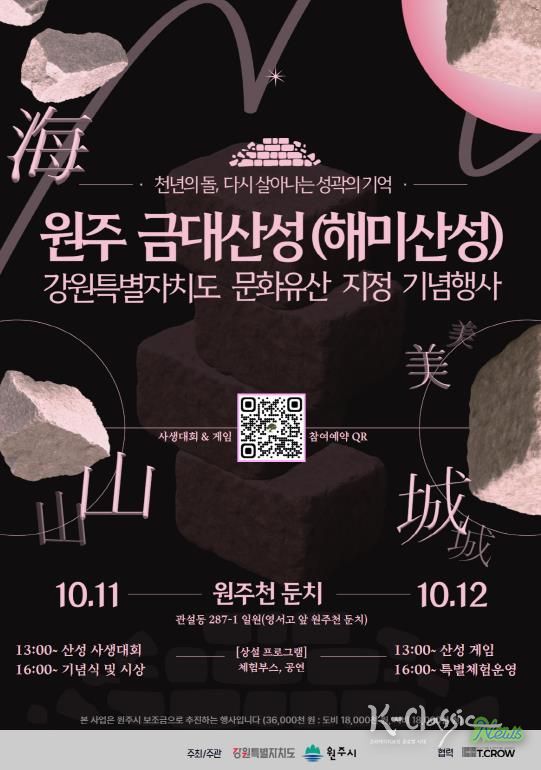 K-Classic News 기자 | 원주시역사박물관은 오는 10월 11일부터 12일까지, 관설동 원주천 둔치(영서고 앞)에서 ‘원주 금대산성(해미산성) 강원특별자치도 문화유산 지정 기념행사’를 개최한다.