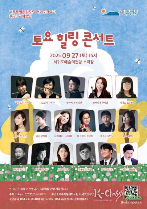 K-Classic News 기자 | 서귀포시는 9월 27일 15시 서귀포예술의전당 소극장에서 서귀포관악단의 기획공연 '토요힐링콘서트'를 진행한다.