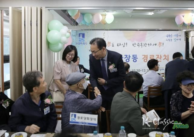 K-Classic News 기자 | 수원시 장안구 파장동은 지난 24일, 지역 어르신 2,600여 명을 모시고 2025년 파장동 경로잔치를 개최했다. 가을의 정취 속에서 열린 이번 행사는 공연과 풍성한 식사가 어우러지며 화기애애한 분위기 속에 진행됐다.