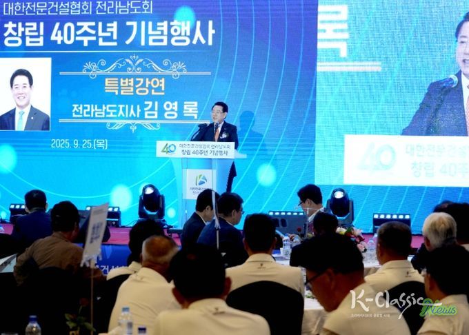 K-Classic News 기자 | 전라남도는 25일 보성군 보성다비치콘도에서 열린 전문건설협회 전남도회 40주년 기념행사에서 대한민국 성장의 새로운 중심축이 되기 위한 비전을제시했다.