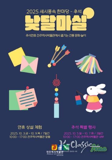 K-Classic News 기자 | 전주시는 전주역사박물관과 어진박물관에서 추석 연휴를 맞아 박물관을 찾는 관람객들을 위해 오는 10월 3일부터 9일까지 추석맞이 체험 프로그램을 운영한다고 29일 밝혔다.