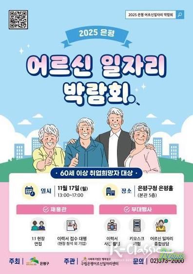 K-Classic News 기자 | 서울 은평구는 오는 17일 오후 1시부터 5시까지 은평구청 5층 은평홀에서 ‘은평 어르신 일자리박람회’를 개최한다고 밝혔다.