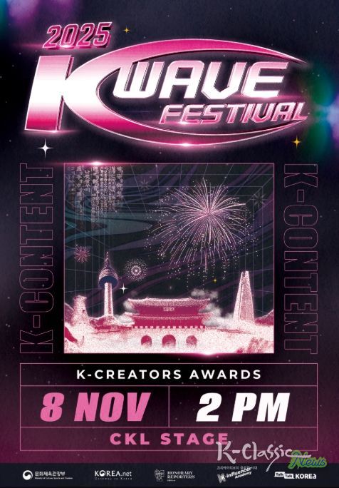 K-Classic News 기자 | 문화체육관광부는 11월 8일 오후 2시, 콘텐츠코리아랩(CKL) 스테이지(서울 중구)에서 ‘2025 한국문화 큰잔치’를 연다. 한국문화 콘텐츠 분야의 국제 인적 연계망을 강화하기 위해 2020년부터 매년 개최하고 있는 이 행사는 코리아넷 공식 유튜브 채널 등을 통해 전 세계에 생중계한다.