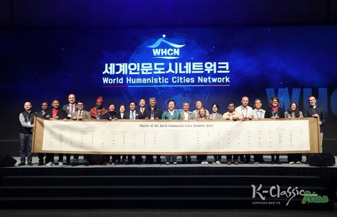 6일 오후 열린 WHCN 총회는 국악 취타대의 웅장한 연주 속에 각국 대표단이 입장하며 개막했다. ‘인문가치로 여는 협력과 연대의 길’을 주제로 진행된 총회에서는, 회원 도시 대표들이 헌장이 인쇄된 대형 족자에 도장을 날인하는 퍼포먼스를 통해 도시 간 인문적 연대와 협력 의지를 상징적으로 선언했다.