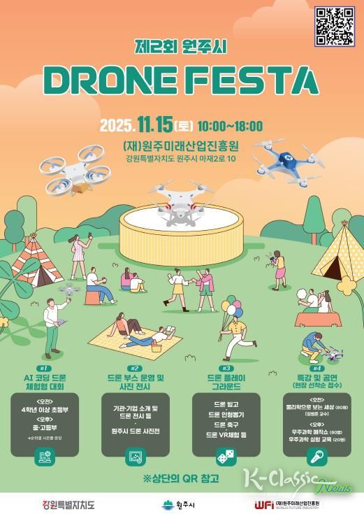K-Classic News 기자 | 원주시는 오는 15일 오전 10시부터 오후 6시까지 원주미래산업진흥원에서 ‘제2회 원주시 드론페스타’를 개최한다.