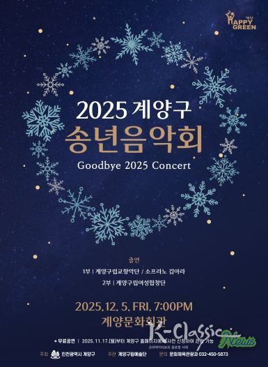 K-Classic News 기자 | 인천광역시 계양구가 한 해의 끝을 아름다운 음악으로 물들일 특별한 무대를 준비했다. 오는 12월 5일 저녁 7시 계양문화회관에서 계양구를 대표하는 계양구립예술단이 함께하는 송년음악회가 주민들을 찾아온다.