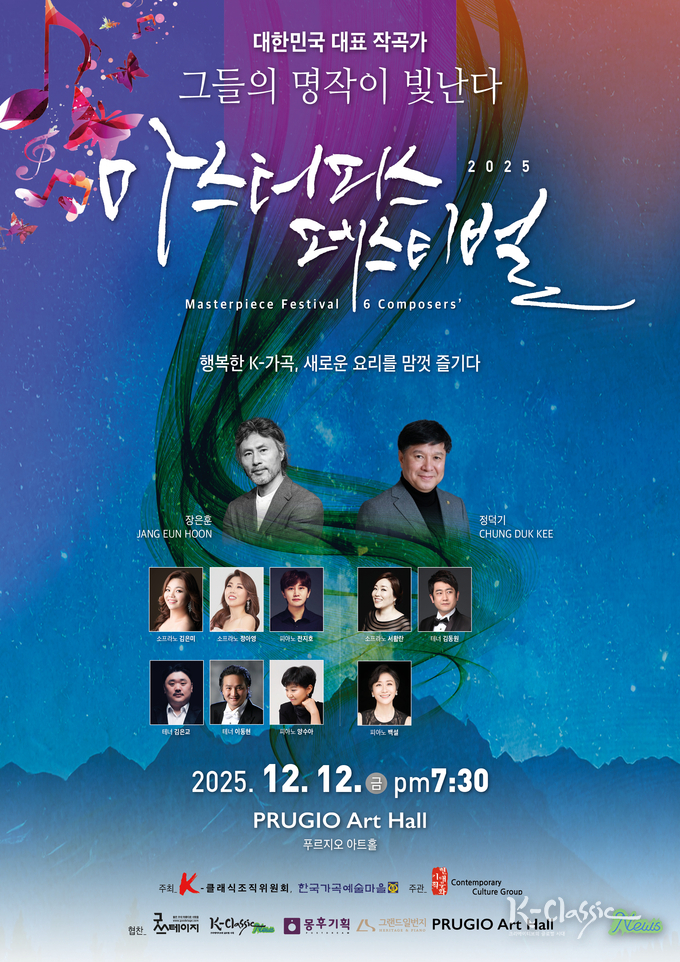 -지금 작업 중인 작품은 위촉받은 예술가곡 작품 10여개와, 그 보다도 우선 순위가 먼저인 천안시에서 위촉을 받은 오페라‘능소야 버들아’입니다. 며칠 전 쇼케이스는 끝났는데 저는 이제 나이가 좀 되었는지? 옛날 만큼 속도가 나질 않아 고민입니다. 그러나 정해진 시간까지 완성해야 하니까 열심히 할 예정입니다. 그리고 마스터피스에 초대되어 무한한 영광으로 생각합니다. 이를 계기로 더욱 발전하는 저가 되도록 노력하겠습니다. 그리고 마스터피스의 무궁한 발전을 기도합니다.