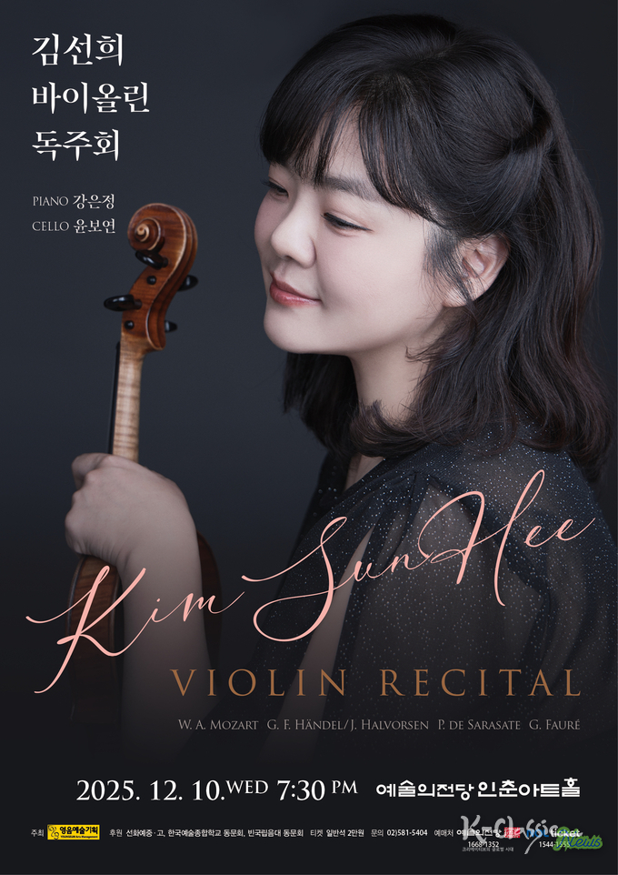 화려한 테크닉과 풍부한 음악성을 바탕으로 매 연주마다 감각적인 음악세계를 선사하는 바이올리니스트 김선희의 독주회가 오는 12월 10일 예술의전당 인춘아트홀에서 개최된다.