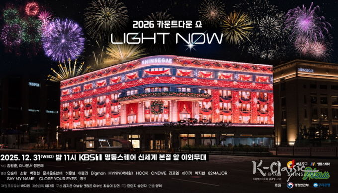 K-Classic News 기자 | 서울 중구는 오는 12월 31일 밤 11시, 명동스퀘어 일대에서 열리는〈2026 카운트다운 쇼 LIGHT NOW〉를 'KBS1TV'와 'KBS 유튜브' 채널을 통해 전 세계에 생중계한다고 밝혔다. 행사 현장에 방문하지 못하더라도 TV와 모바일을 통해 편안하게 새해의 감동을 함께할 수 있다.