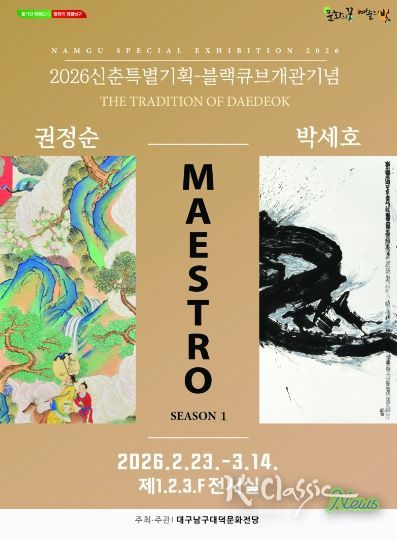 K-Classic News 기자 | 대구 남구 대덕문화전당이 전통 예술을 동시대의 시선으로 다시 읽는 신춘특별 기획전시 '권정순‧박세호 초청 MAESTRO 展'을 오는 2월 23일부터 3월 14일까지 대덕문화전당 제1, 2, 3, F 전시실 전관에서 개최한다.