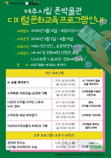 K-Classic News 기자 | 여주세종문화관광재단 여주시립 폰박물관은 2026년 상반기 디지털 역량 강화를 위한 '디지털문화교육프로그램'수강생을 모집한다.