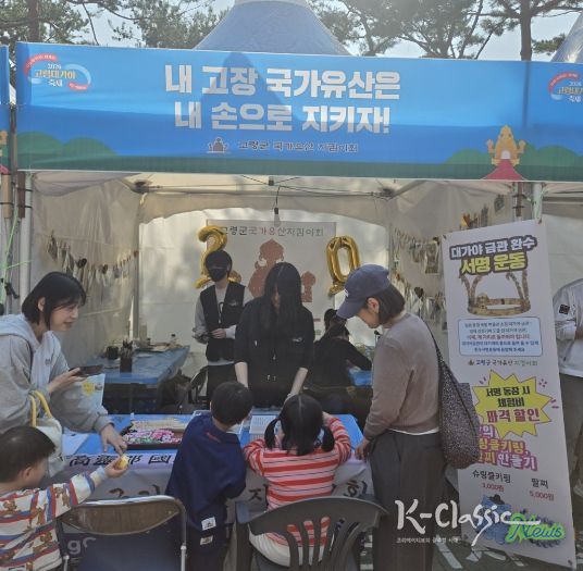 K-Classic News 기자 | 고령군 국가유산 지킴이회(회장 김민규)가 지난 3월 27일부터 29일까지 3일간 열린 ‘2026 대가야 축제’에서 자원봉사 부스를 운영하며 일제강점기 국외로 반출된 ‘대가야금관’ 환수를 위한 범국민 서명운동을 펼쳐 큰 호응을 얻었다.