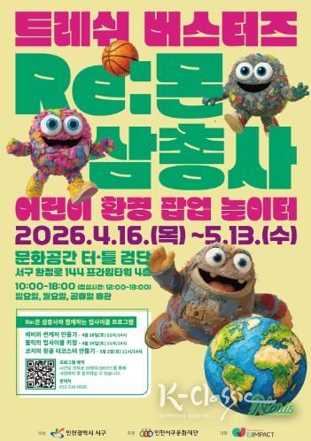 K-Classic News 기자 | (재)인천서구문화재단은 오는 4월 16일부터 5월 13일까지 문화공간 터·틀(검단)에서 어린이 환경 체험 전시 ‘트레쉬 버스터즈: Re:몬 삼총사 - 어린이 환경 팝업 놀이터’를 개최한다.