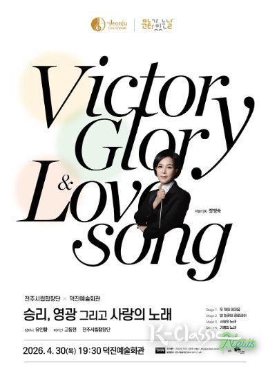 K-Classic News 기자 | 전주시립합창단(예술감독 겸 지휘자 김철)은 4월 ‘문화가 있는 날’을 맞아 오는 30일 오후 7시 30분, 덕진예술회관에서 기획 공연인 ‘승리, 영광 그리고 사랑의 노래’를 선보인다.