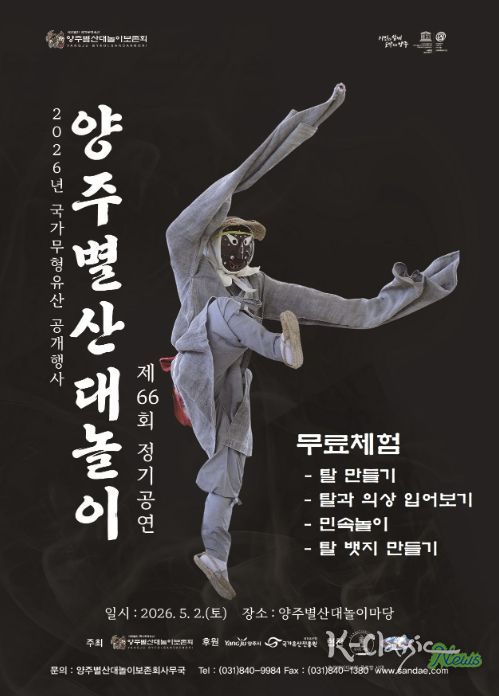 K-Classic News 기자 | 양주시는 국가유산청의 지원을 받아 ‘제66회 양주별산대놀이 정기공연’을 오는 5월 2일 양주별산대놀이마당에서 개최한다고 밝혔다.