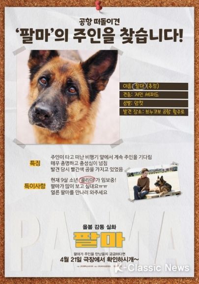 K-Classic News 최태문 기자 | 오는 4월 21일 찾아오는 감동 실화 '팔마'가 영화의 놀라운 실화 스토리를 담아낸 ‘주인을 찾습니다’ 포스터를 전격 공개했다.