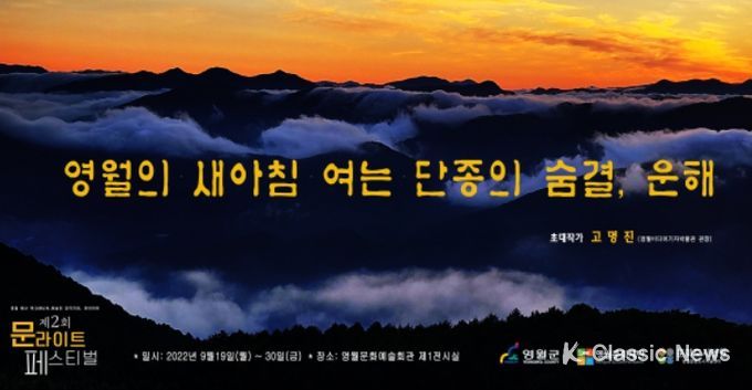 영월군과 영월문화재단이 주최하는 제2회 영월 '문라이트 페스티벌' 초대작가전으로 열리는 "영월의 새아침 여는 단종의 숨결, 운무"는 한국일보 사진기자로 활약했던 고명진 영월미디어기자박물관 관장이 촬영한 사진 50여점이 선보인다.