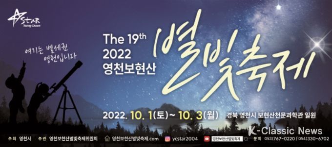 K-Classic News 최지나 기자 | 제19회 영천보현산별빛축제가 오는 10월 1일부터 3일간 영천보현산천문과학관 일원에서 개최된다.