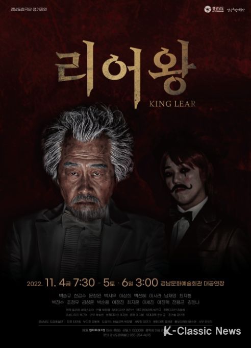 K-Classic News 최지나 기자 | 셰익스피어 비극의 정수 ‘리어왕’이 올 가을 경남도민을 찾는다. 400여 년 동안 전 세계에서 사랑받아온 셰익스피어 4대 비극 중에서도 가장 탁월한 비극으로 손꼽히는 연극 ‘리어왕’이 경남도립극단만의 색채로 제작되어 경남도민에게 첫 선을 보인다.
