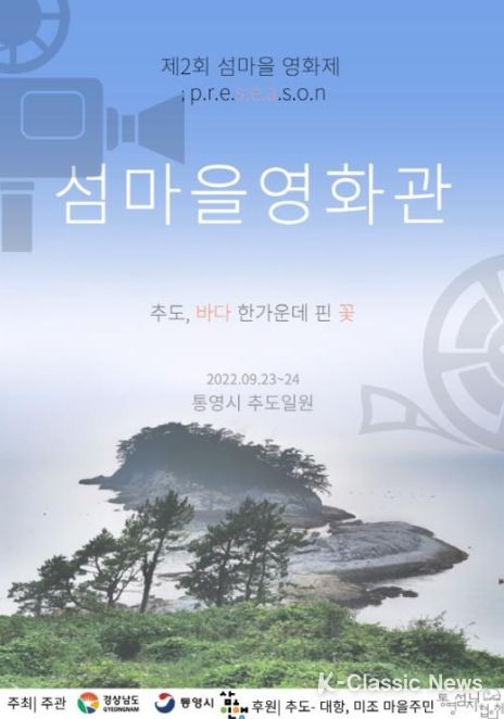 K-Classic News 최지나 기자 | 경남도는 오는 23일부터 24일까지 양일간 통영시 추도에서 정지영 감독, 전수일 감독, 조진웅 배우 등을 초청하여'살고 싶은 섬 가꾸기 사업' 일환으로 주민 문화 증진을 위한 제1회 추도 섬마을 영화제를 개최한다.