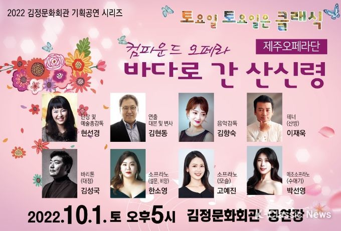 K-Classic News 최지나 기자 | 서귀포시는 클래식 음악의 활성화와 대중화를 위한 김정문화회관 기획공연 시리즈‘토요일 토요일은 클래식’의 세 번째 공연, 제주오페라단의 컴파운드 오페라《바다로 간 산신령》을 오는 10월 1일 토요일 오후 5시에 김정문화회관 공연장에서 개최한다.